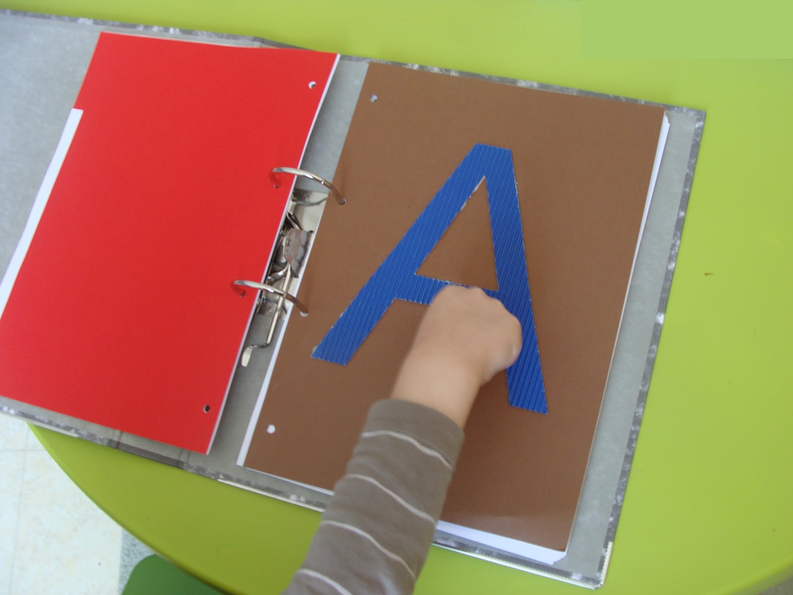 ensuite j'ai assemblé les deux exercices : colle des gommettes rouge sous le A